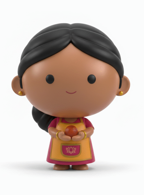 Chef Anika Gulab is a celebration wrapped in an apron — bangles that clink like tiny bells, hair pinned with saffron-colored ribbons, and hands that smell faintly of ghee and sugar. She grew up where dessert was the language of love — ladoos made for birthdays, jalebi shared on sleepy mornings, rasmalai served when good news arrived before words could. Anika stirs her sweets the way dancers move — slow, graceful, layered with rhythm. To her, dessert is abundance — meant to shimmer, meant to surprise, meant to make the world feel fuller than it was a moment ago